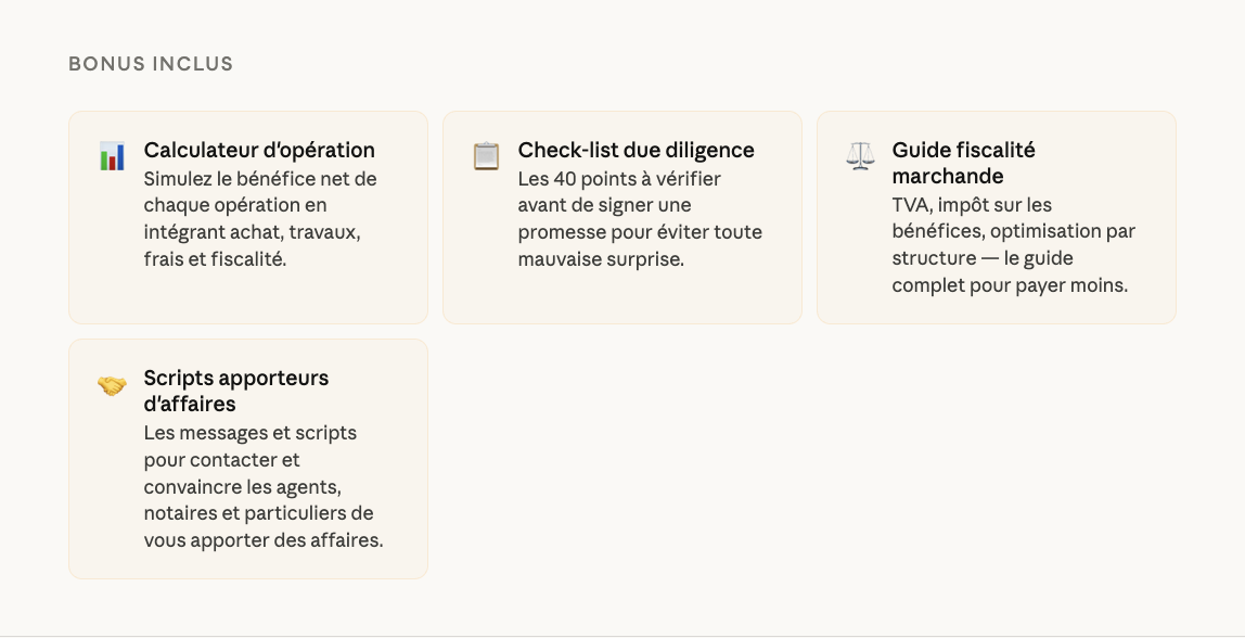 Expérience, compréhension, fiscalité, démarchages, prospection, financement, travaux, urbanisme, valorisation, travaux, mise en vente, comment atteindre des projets plus gros.